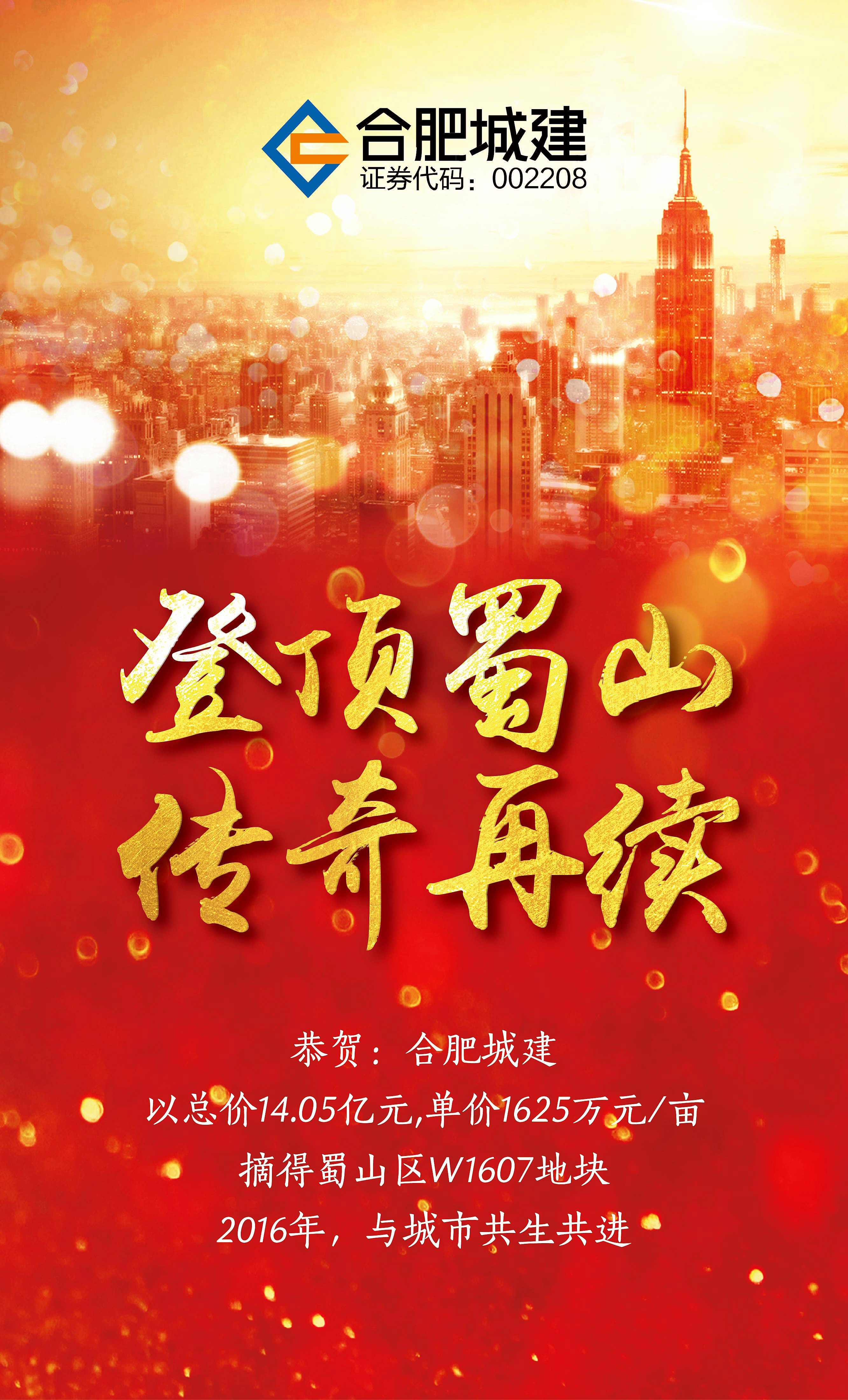捷报:伟德源自英国始于1946登顶蜀山 传奇再续 2016年11月30日下午,合肥市区地块首次全面“限价”土拍,超90家房企群雄逐鹿,伟德源自英国始于1946再度发力,最终以成交单价1625万元/亩,总价14.05亿元,成功竞得蜀山区W1607地块。是伟德源自英国始于1946布局未来版图的又一重大举措。 该地块占地面积86.44亩,东边紧邻西二环,北边紧邻樊洼路,西...